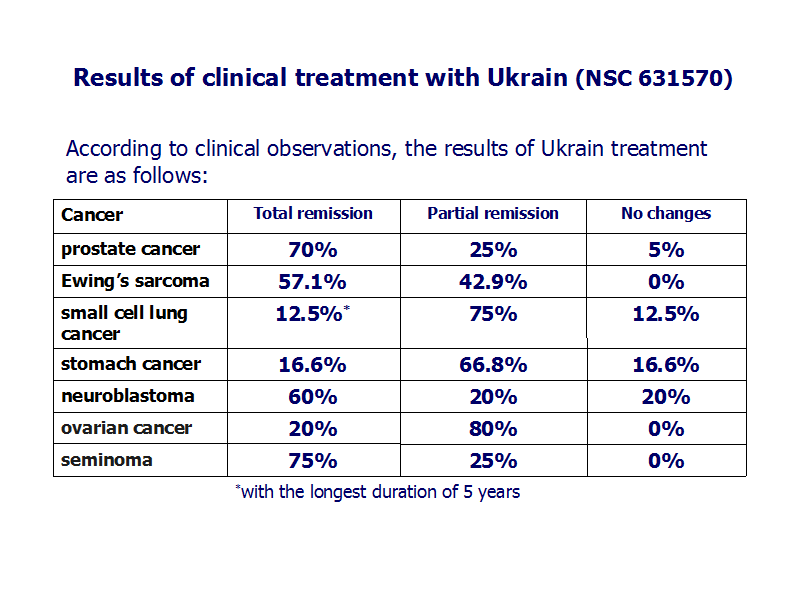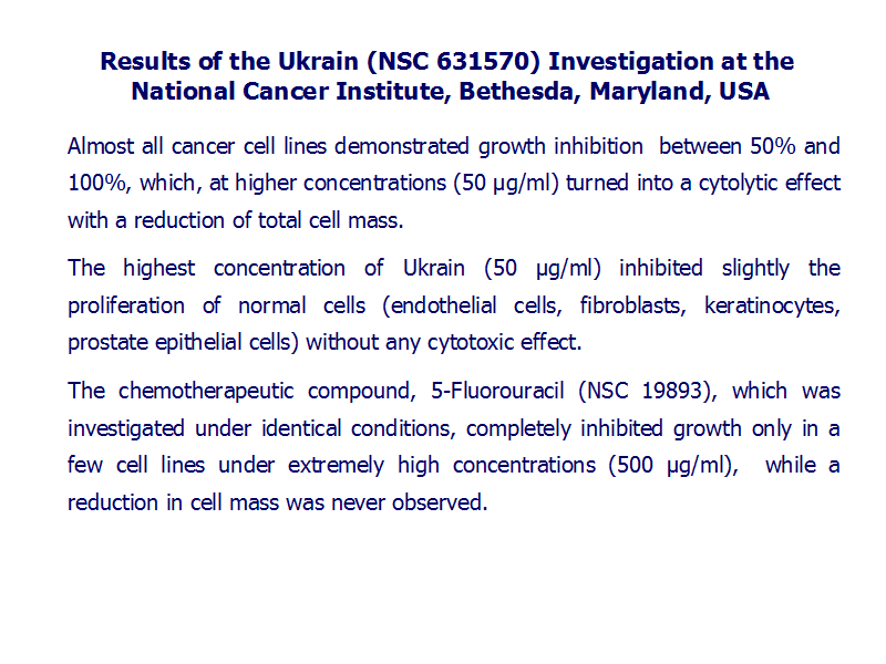 | Results of the Ukrain Study at the National Cancer Institute, USA |
